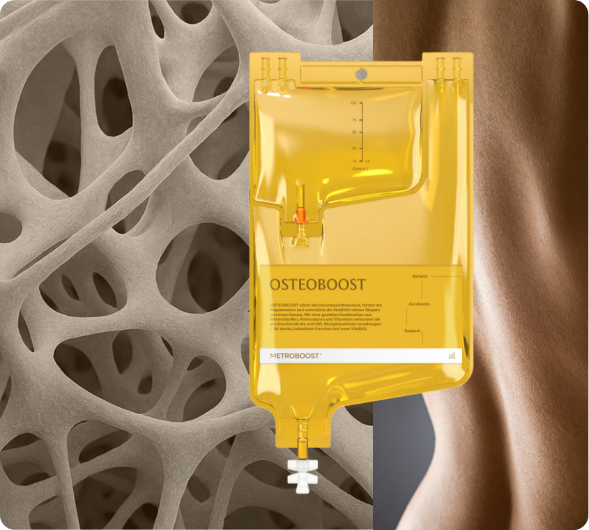 Gezielte IV-Therapie mit Calcium-, Magnesium- und Zink-Komplexen. Unterstützt Knochendichte, Beweglichkeit und Regeneration. Entwickelt zur leitliniengerechten Begleitung von Osteoporose-Therapien (DVO 2023).
